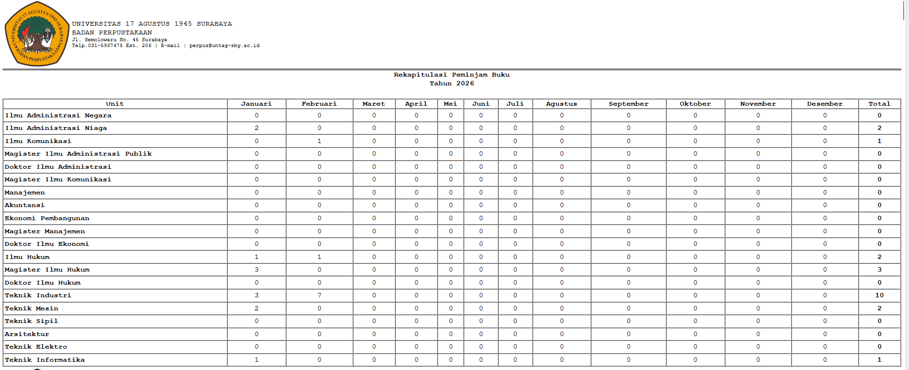 Laporan Rekapitulasi Peminjaman Buku Januari selengkapnya akses di : Link